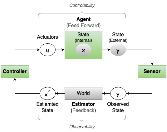 The benefits of this formulation of agentic system is the theoretic and experiential richness of the field of automatic control. For example, the concept and practice of observability and controllability can be used to reason and control (pun intended) for the vulnerabilities of data driven paradigm such as reinforcement learning which we’ll talk about next.