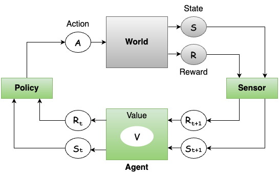 Here is the same digital agent casted into a reinforcement learning system:
