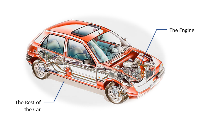 - A car without the engine is still useful but engine without the car is useless. After all, push carts has been used before the era of automobile and are still used widely today. The ingenious invention of wheels provides a more efficient way of moving than walking and the platform provides more capacity than holding with hands.