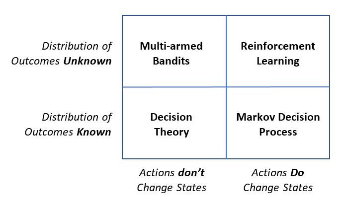 Looking at schematic diagrams of a few machine decisioning methods, one common theme jumps out: they all have loops! The loops either optimize the overall reward across sequential decision steps or continuously improve (learn) the model over time.