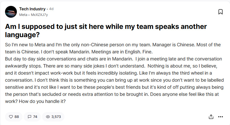 [7] You may mistaken the subject of the post for a different ethno-group but it was written after a conversation with a Chinese friend who is an engineering manager of an all-Chinese team at Meta when, upon learning the fact, my reaction was “Dude, this is neither right nor wise!”. The all-Chinese teams at Meta and Google filled with math geeks are a rarity in the tech industry. Since trust among Chinese people was destroyed during the Cultural Revolution, you see most Chinese just want to be the politically and socially inactive craftsmen, and they typically shun other Chinese in American workplace. Anyway, any team of any single whatever identity is the subject of my complaint here.⤴
